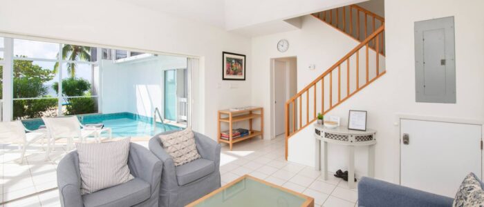 Wake to soft ocean hues, spend sun-soaked afternoons by your private pool, and unwind as the sky melts into golden Caribbean sunsets. This beautifully renovated waterfront retreat blends comfort, privacy, and effortless indoor-outdoor living.